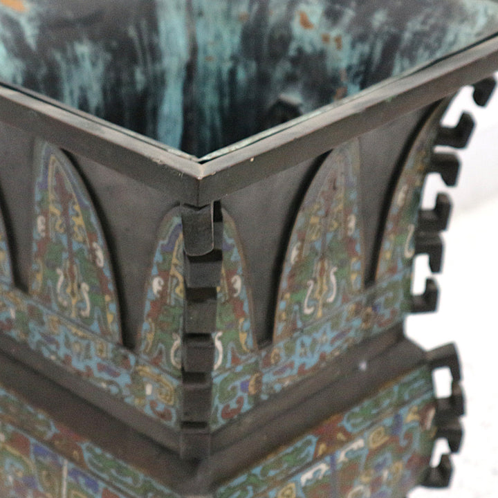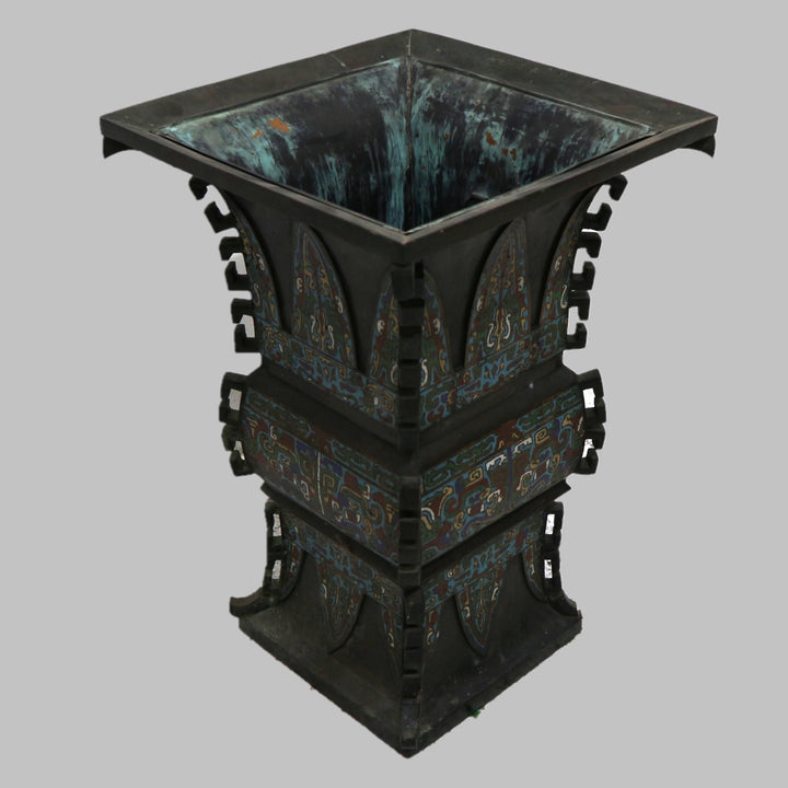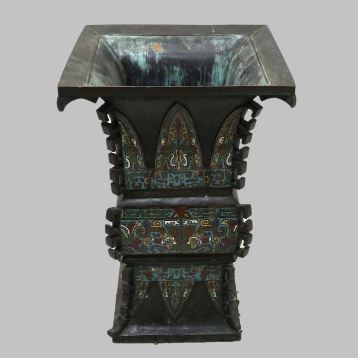 Archaistic Chinese Bronze & Cloisonne Offering Vessel