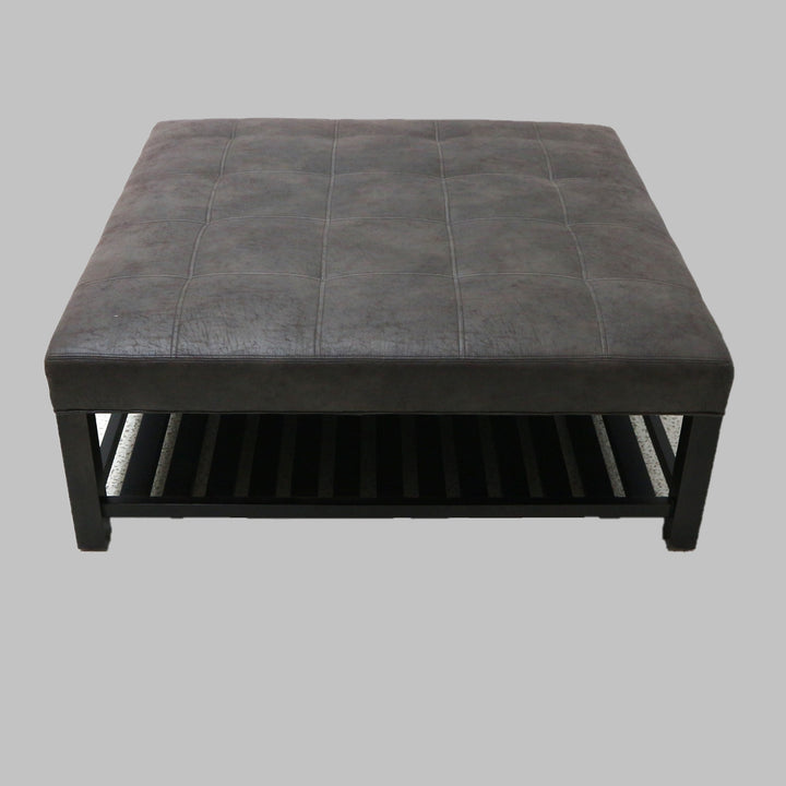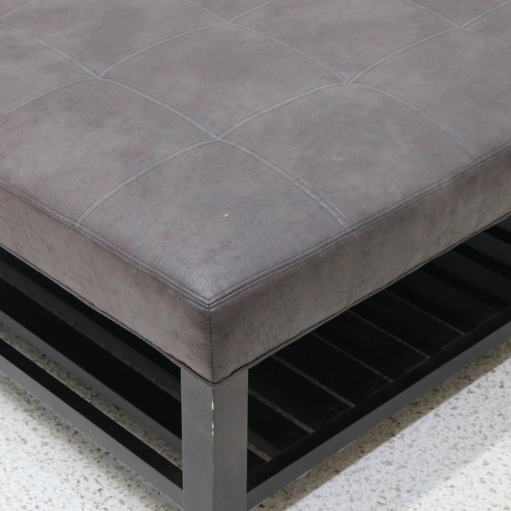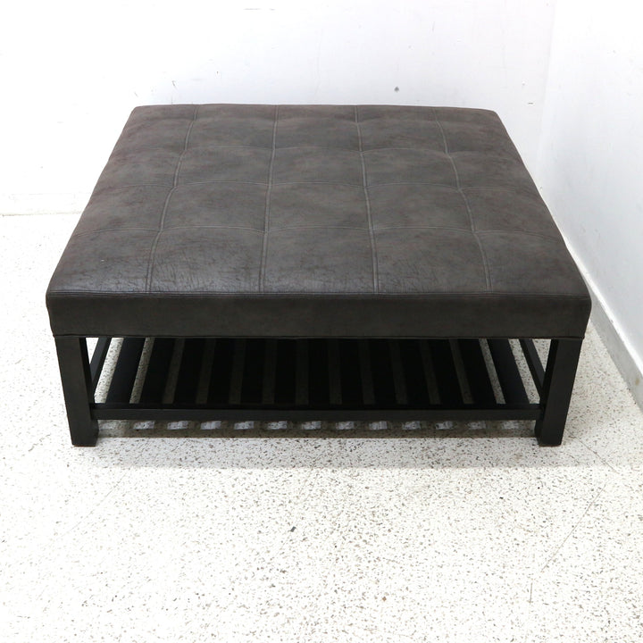 Arhaus Butler Leather Biscuit Tufted Ottoman w/ Two Trays