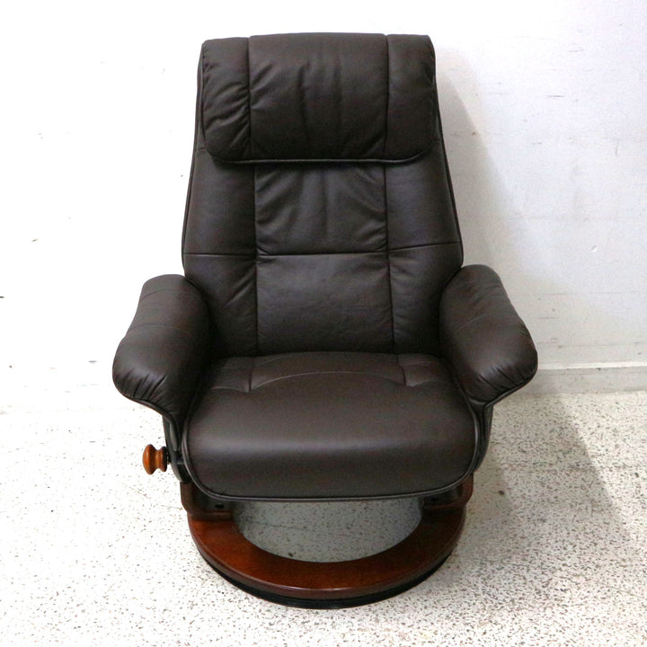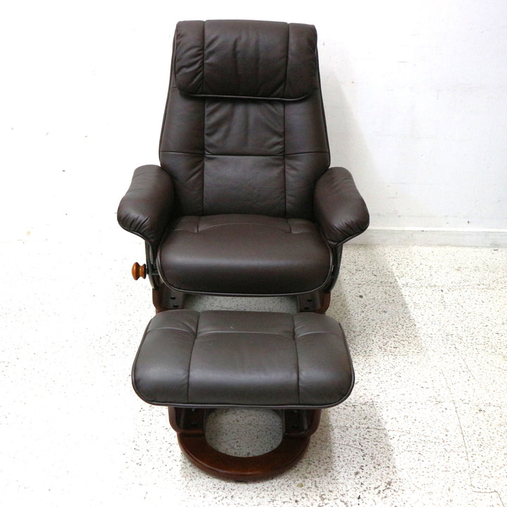 Benchmaster Ventura ll Brown Leather Recliner w/Ottoman (2-Available)
