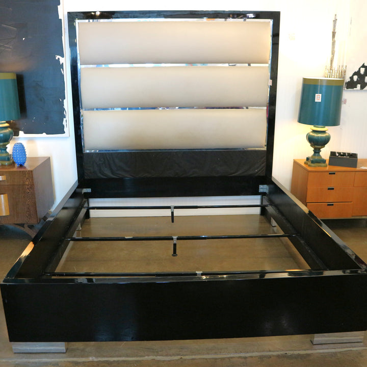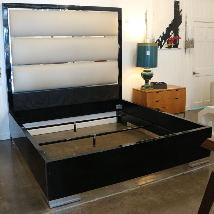 Custom Lacquered, Leather & Chrome Cal King Bed