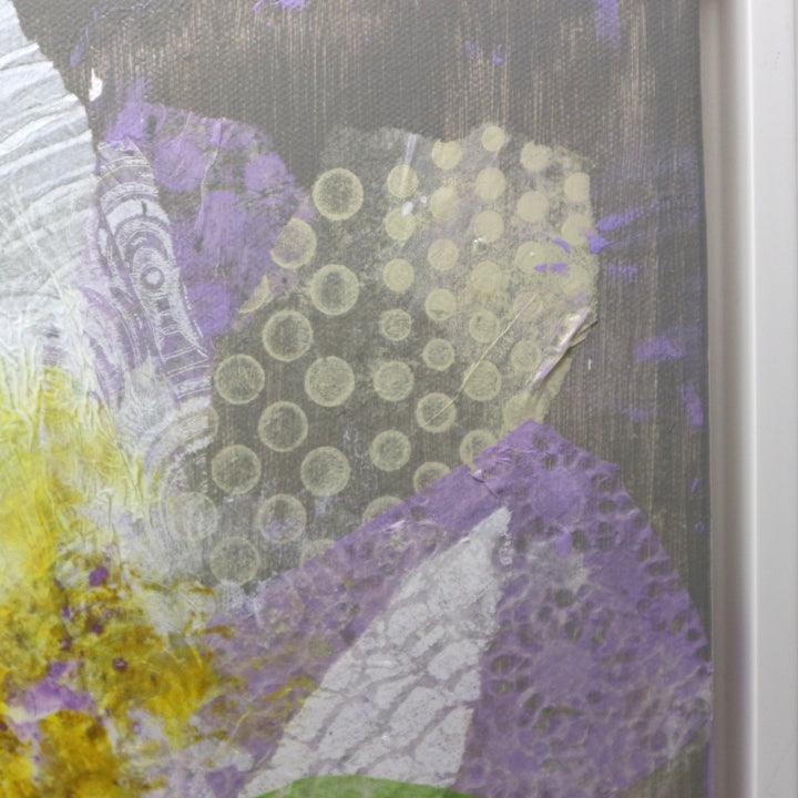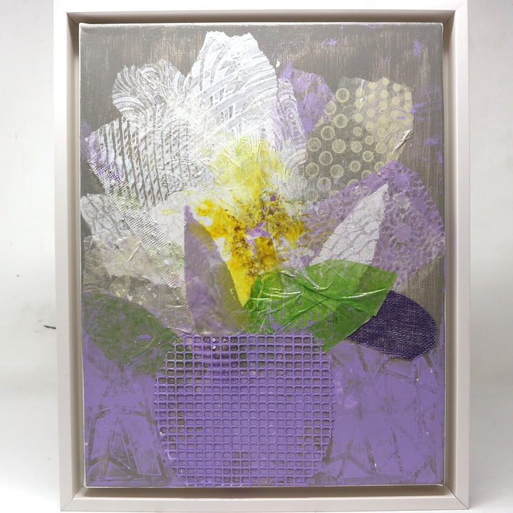 “Flowers in Purple Vase” by Mary Hewett Framed Mixed Media on Canvas