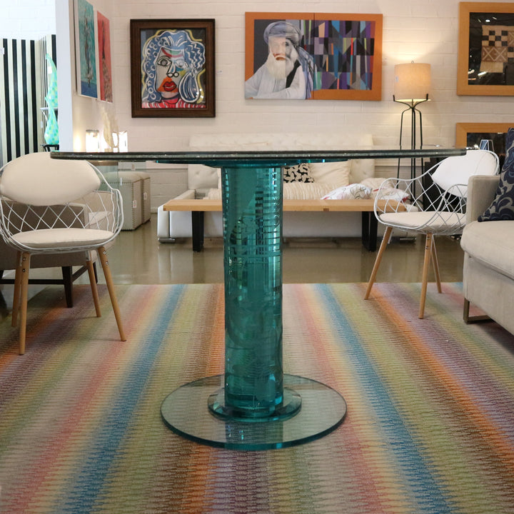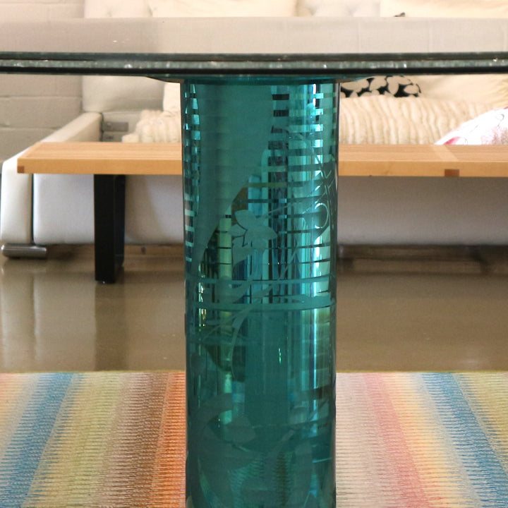 Frosted Etched & Crackle Glass Foyer Table
