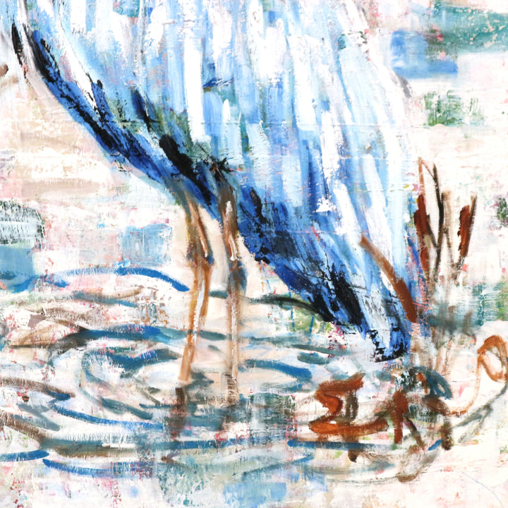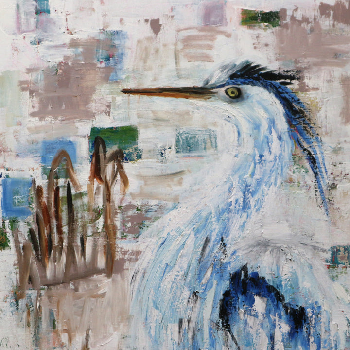 “Mr. Big Blue Heron” by Debbie Daise Oil on Canvas