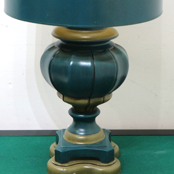 Pair of 1960s Teal Ceramic Lamps w/ Teal Shades