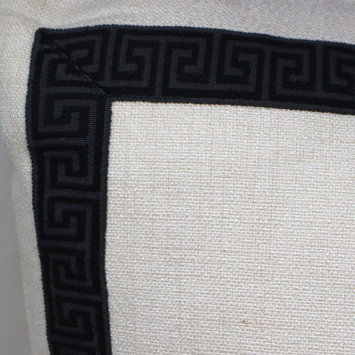 Pair of Ivory Pillows w/ Black Greek Key Border