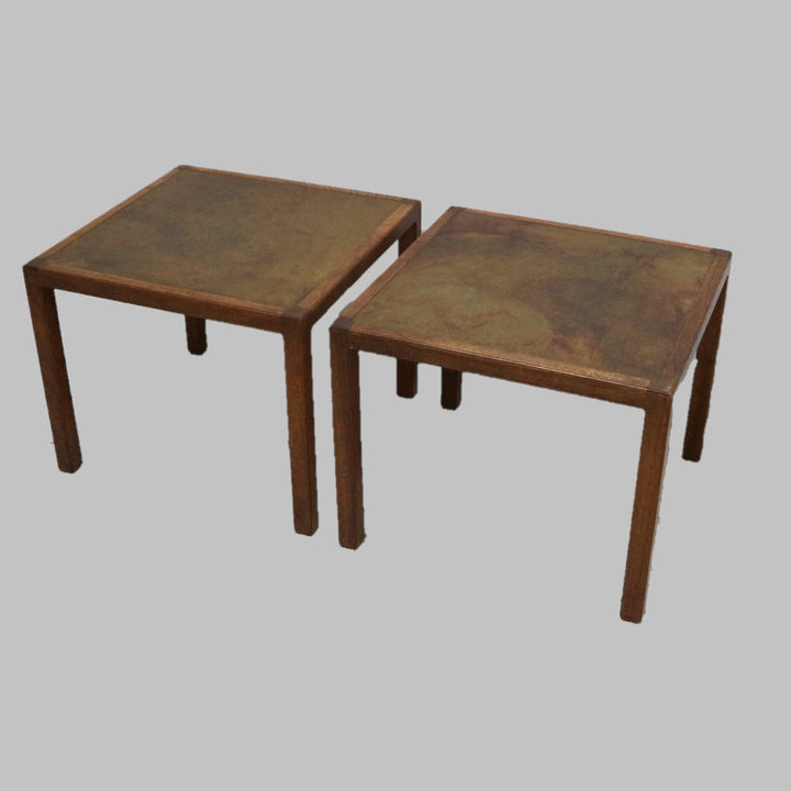 Pair of MCM Harry Lunstead Copper Inset Occasional Tables