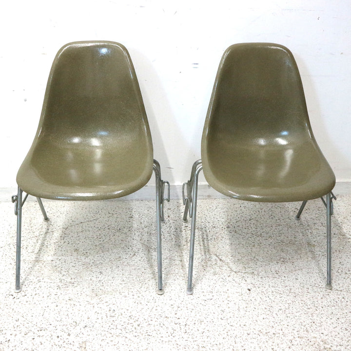 Pair of Olive Green Eames Stacking Chairs