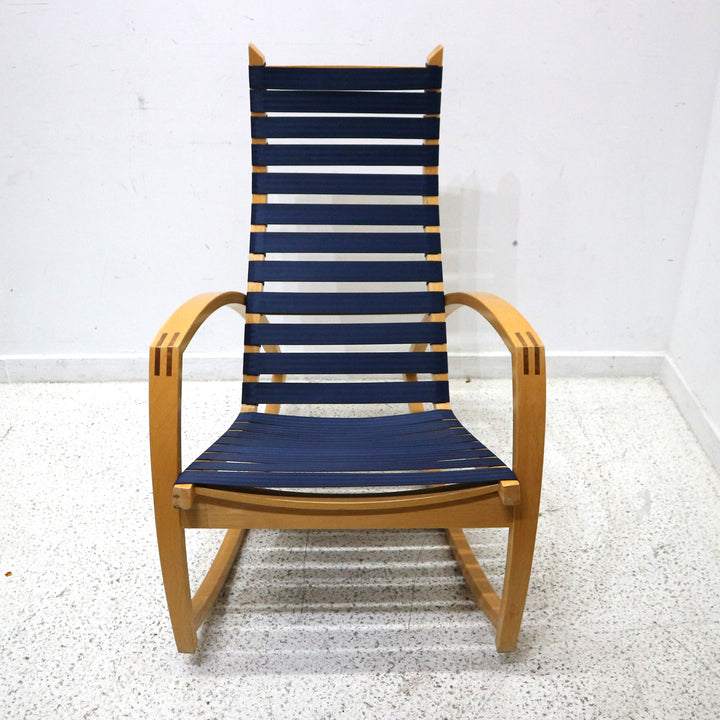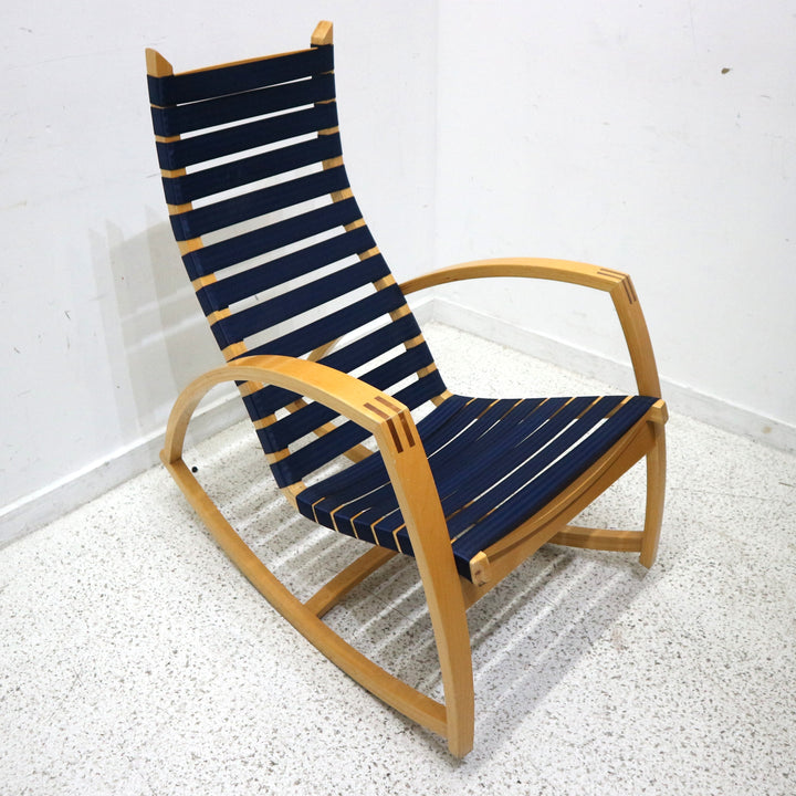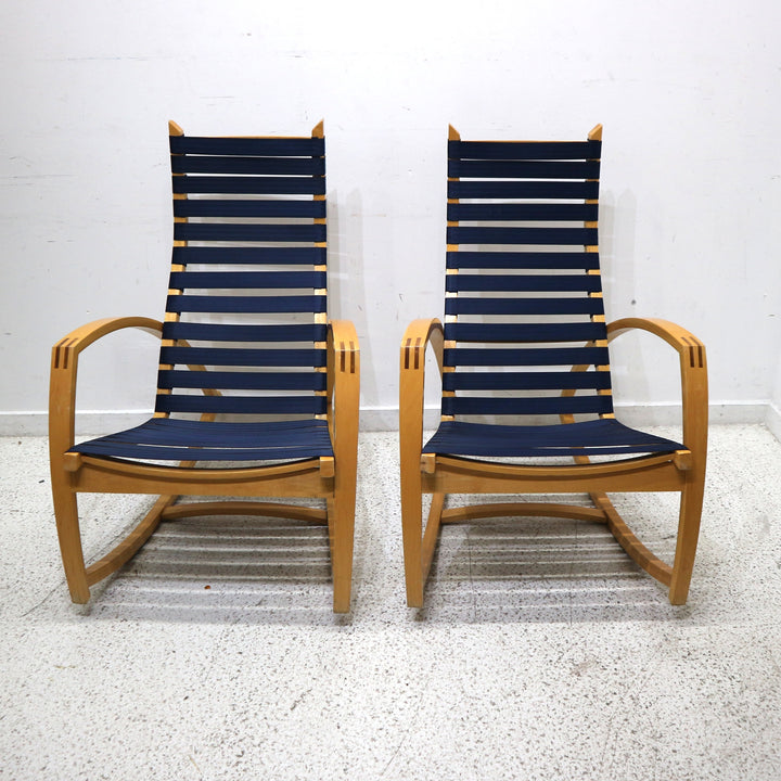 Pair of Peter Danko Blue Stap Rocking Chairs
