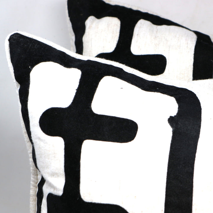 Pair of Safavieh Cream & Black Down Pillows