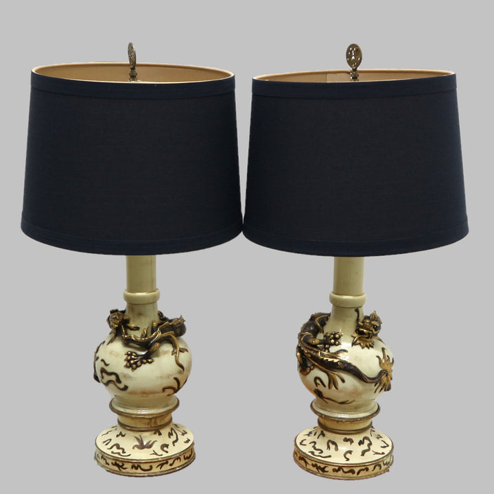 Pair of Vintage Ceramic Dragon Lamps