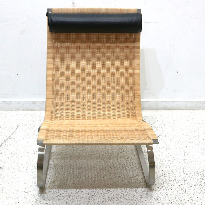 PY8 Rattan Lounge Chair w/ Leather Pillow Boho Bali