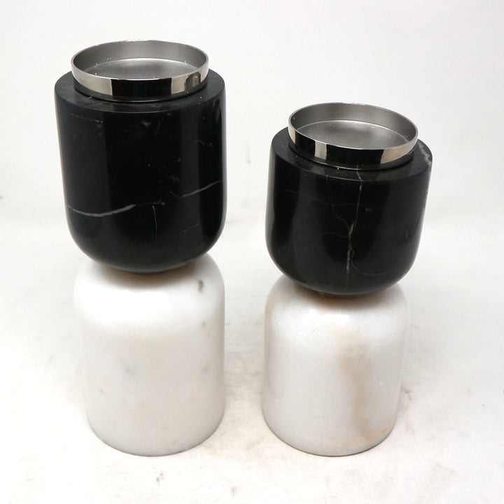 Set of 2 Black & White Marble Candle Holders