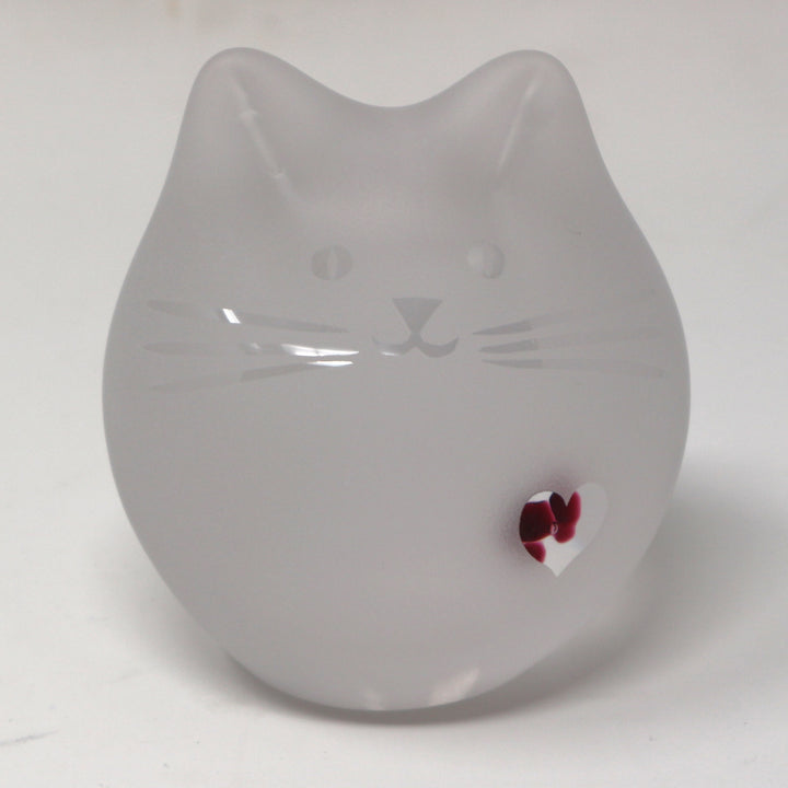 Vintage James Kontes Frosted Glass Cat w/ Heart