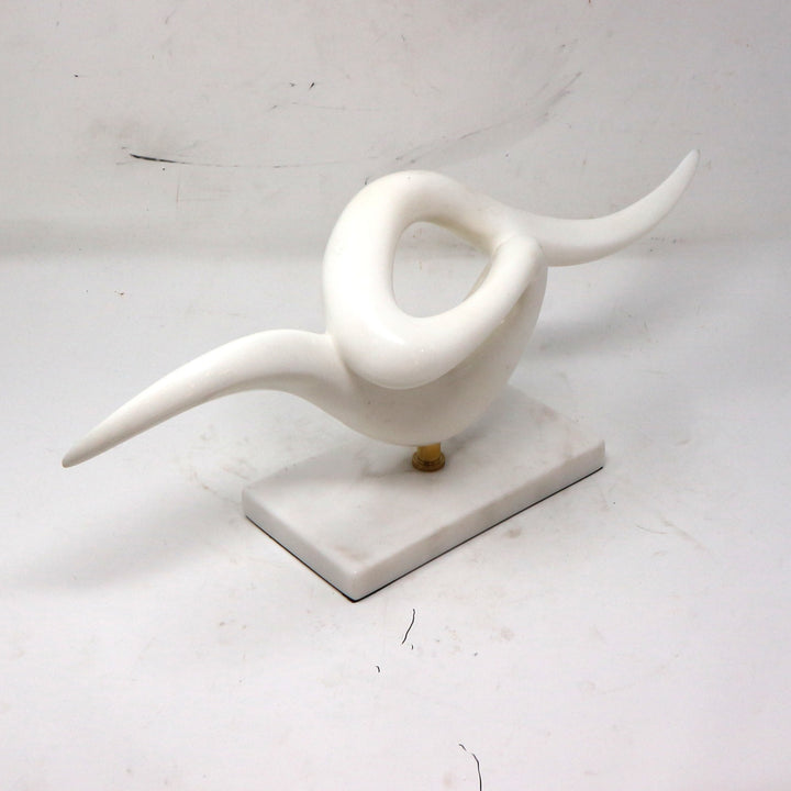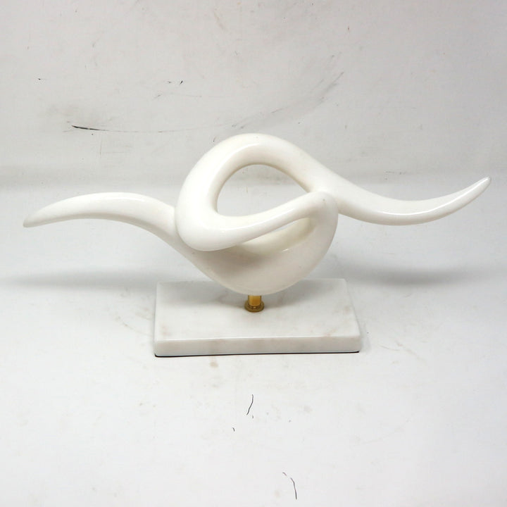 White Abstract Marble & Brass Sculpture